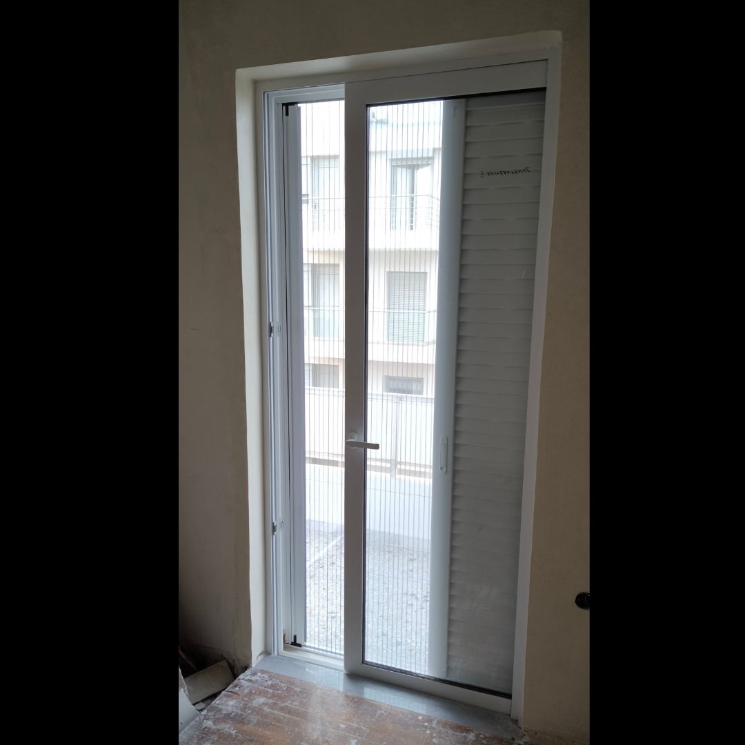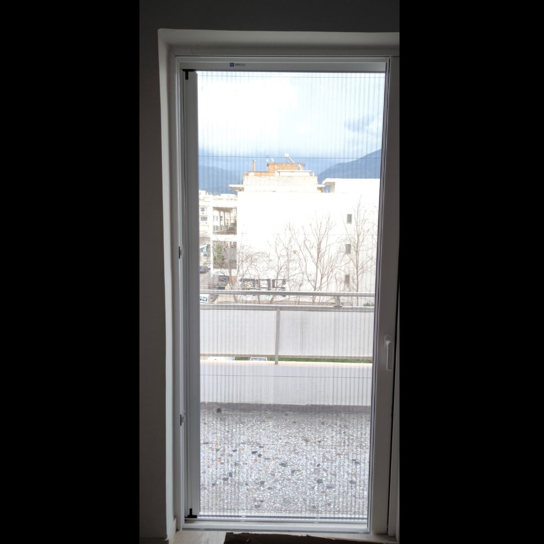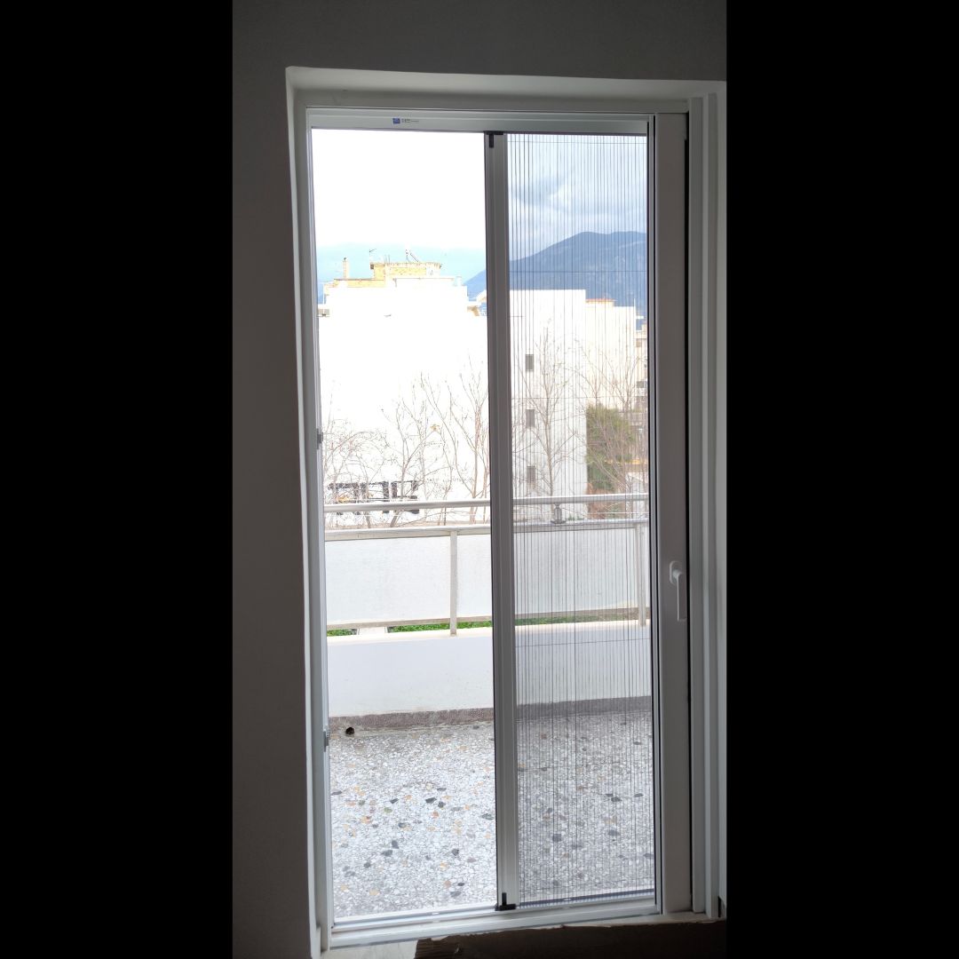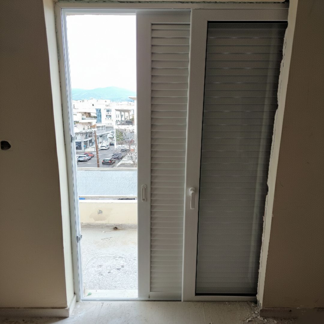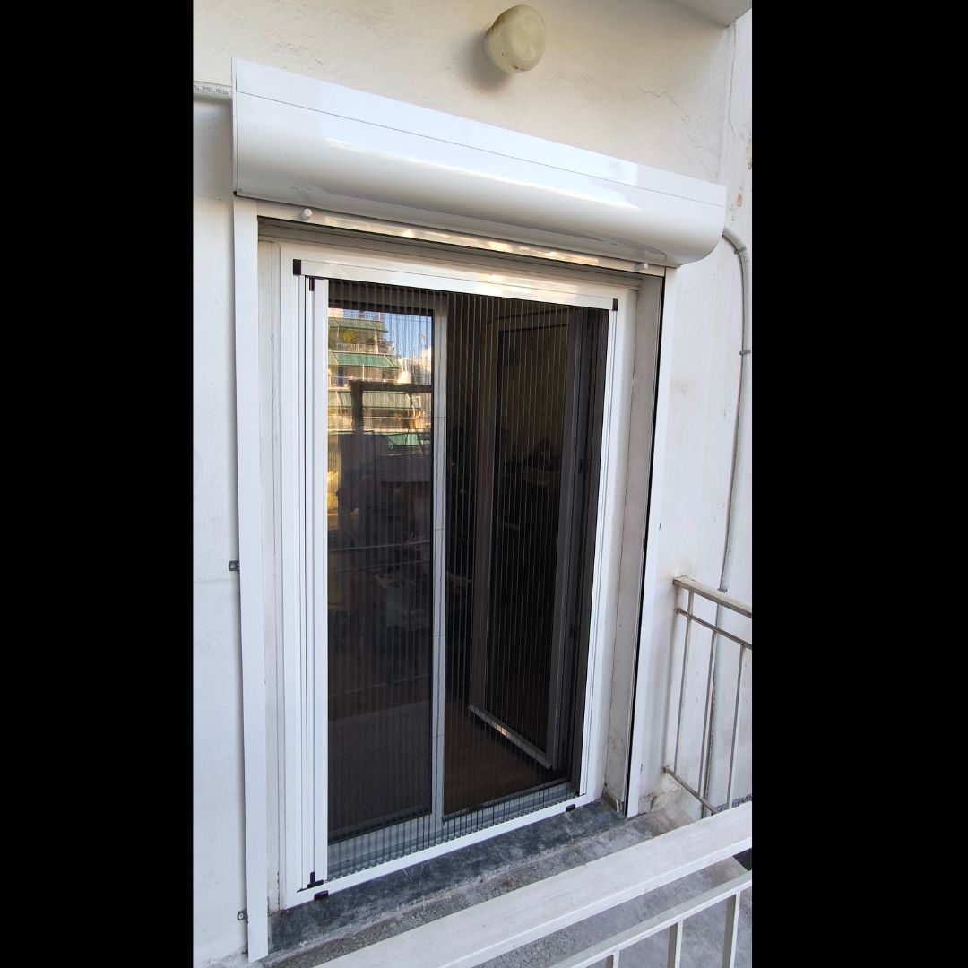 Αντικατάσταση με Ενεργειακά Κουφώματα Αλουμινίου (M9660), Ral:9016, Παντζούρι Εξωτερικό Μ9400 Σήτες: (Ρολό/Κάθετες, Δίφυλλη Plisse)