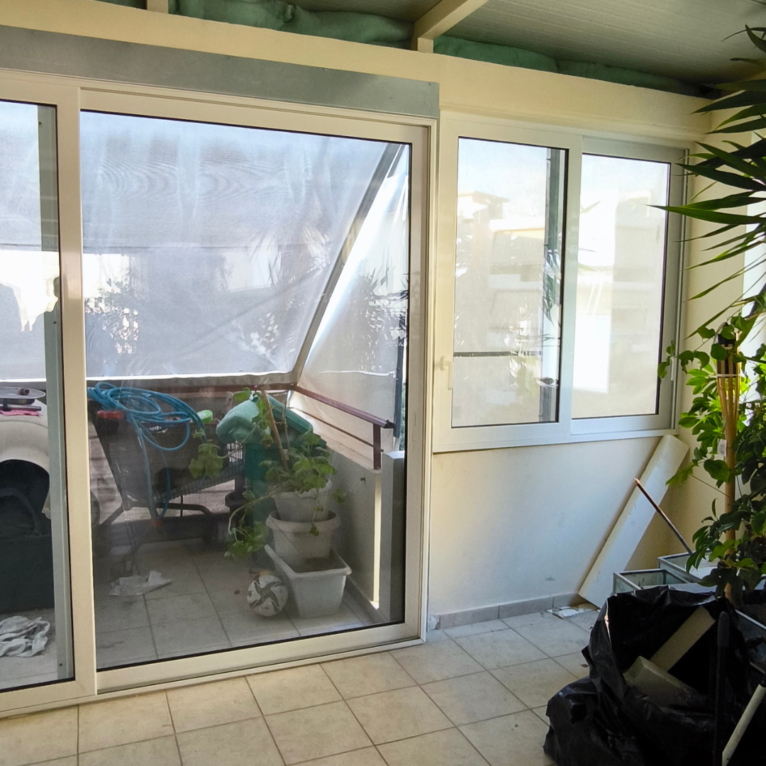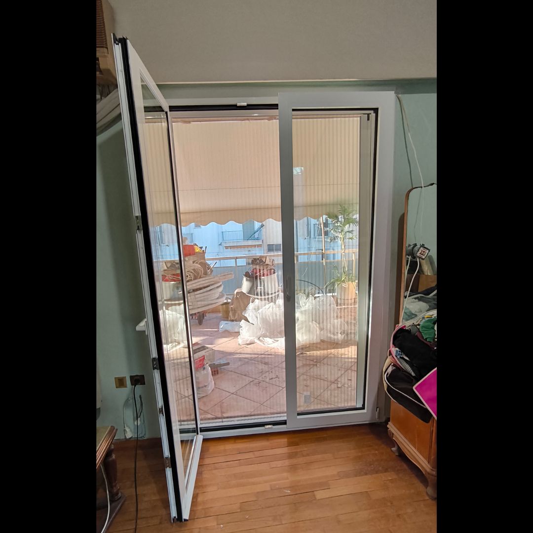 Αντικατάσταση με Ενεργειακά Κουφώματα Αλουμινίου (M9660, S350), Ral:9016, Σήτες: (Plisse, Σταθερές, Συρόμενη)