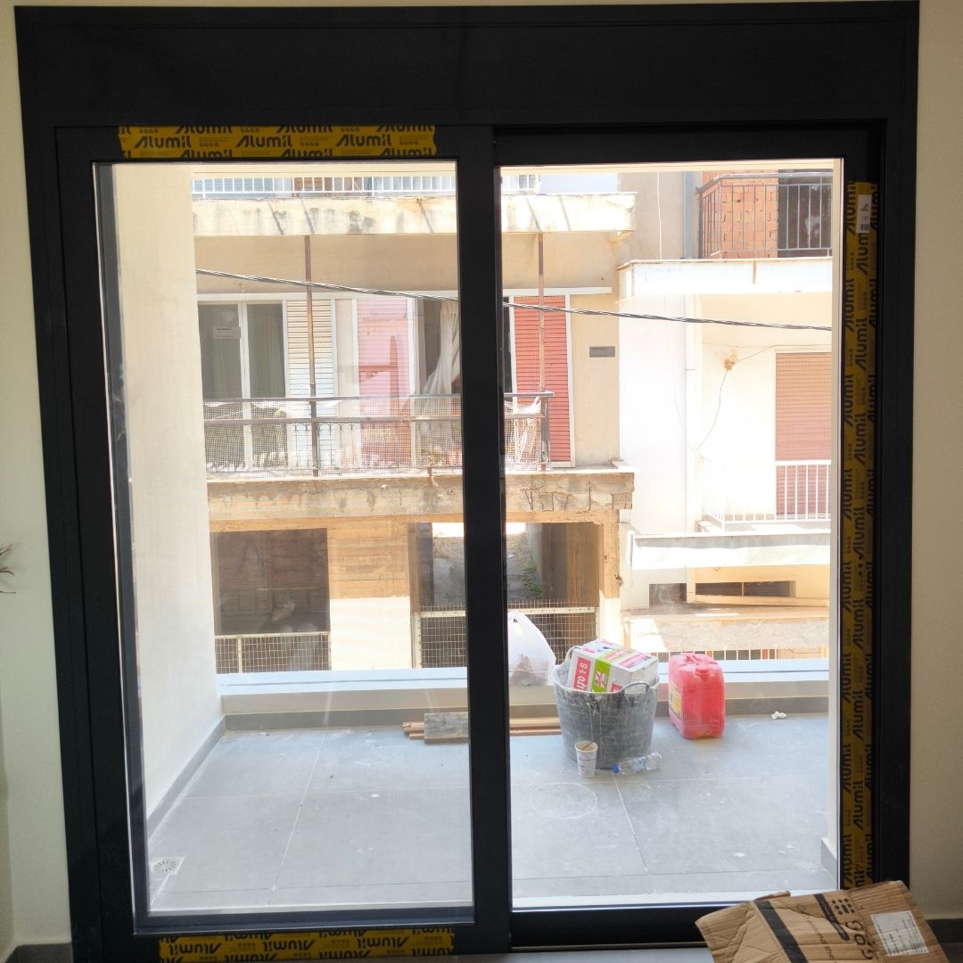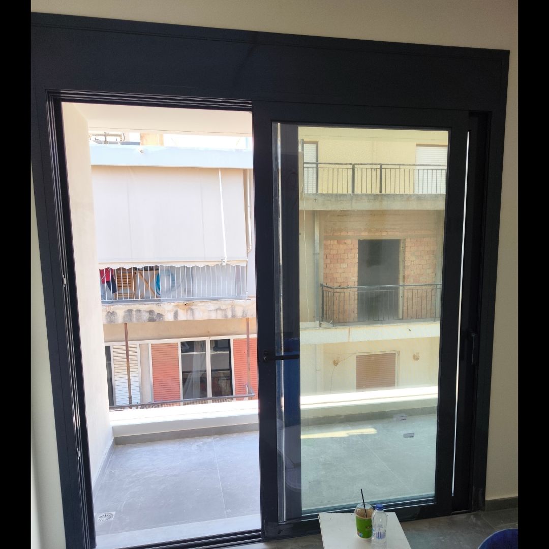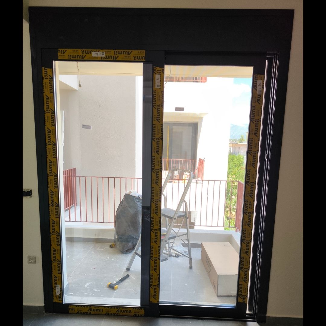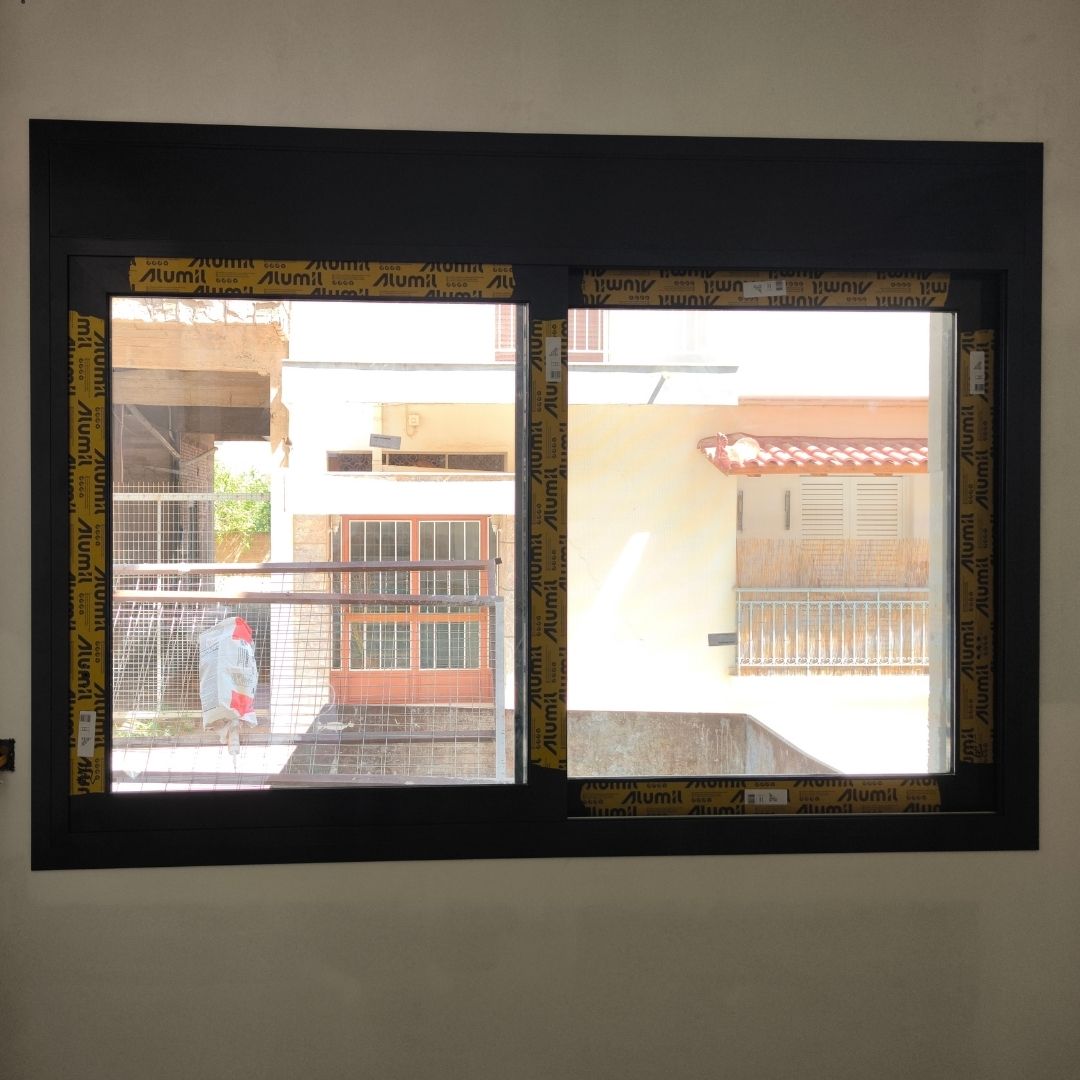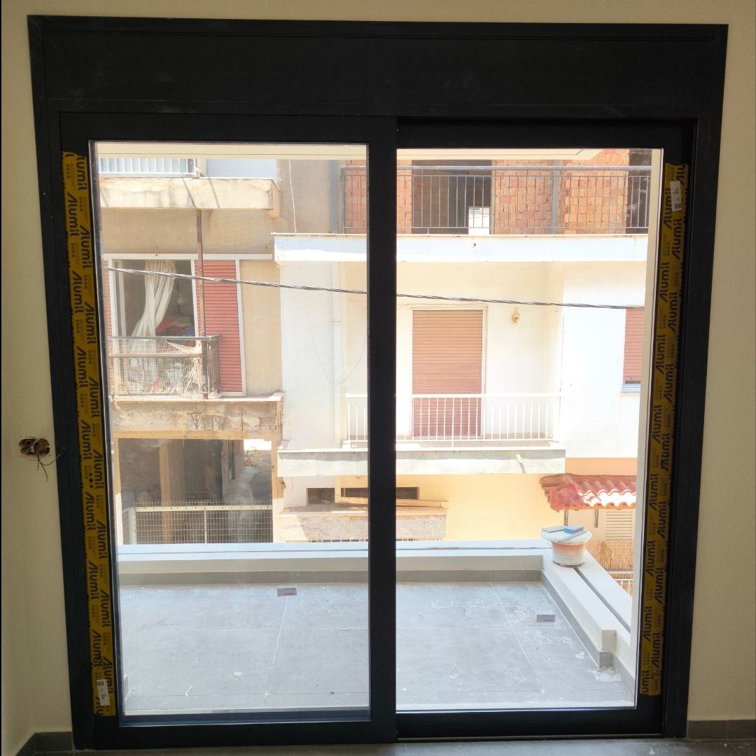 Τοποθέτηση Ενεργειακά Κουφώματα Αλουμινίου (M9660), Παντζούρια Δίφυλλα Μ9400, Ral:7016, Σήτες: (Plisse, Ρολό/Κάθετη), Μεταλλικές Συρόμενες Ασφάλειες "Καλαμάτα - Γιαννιτσάνικα"