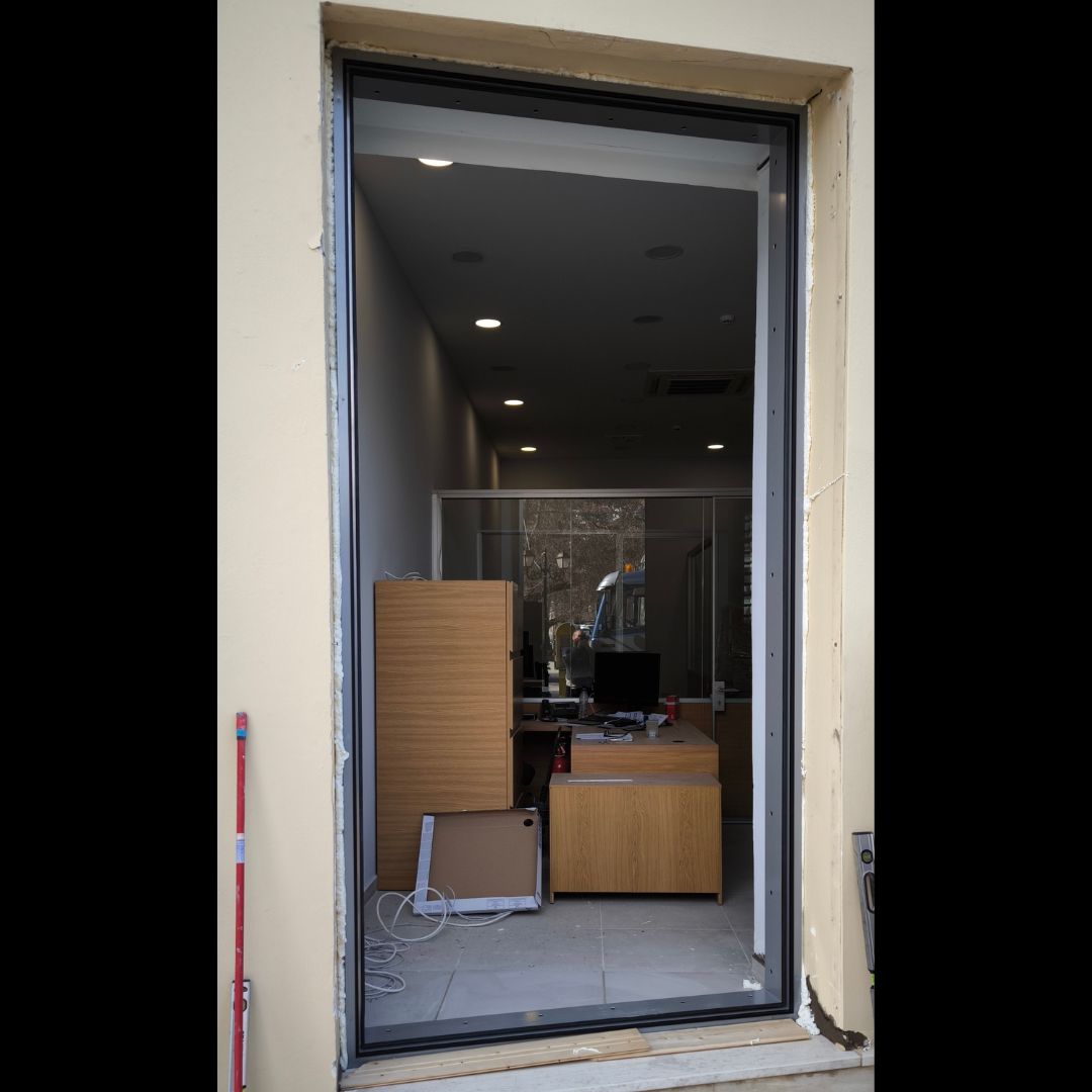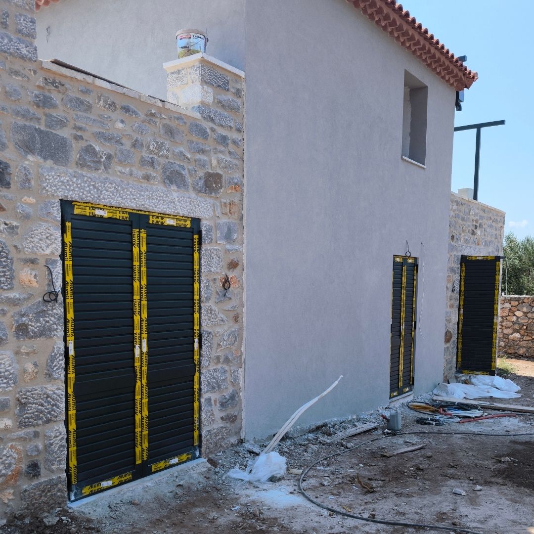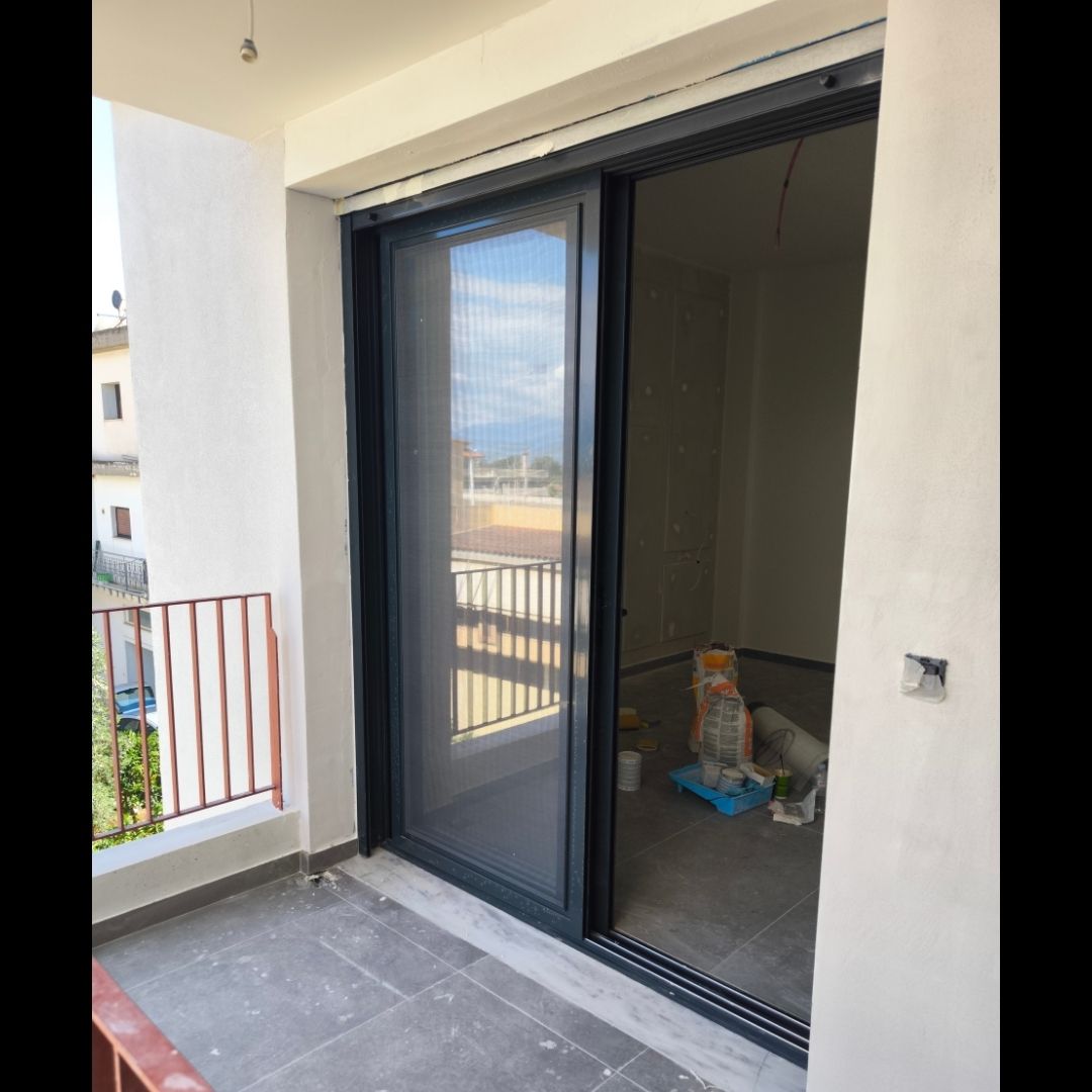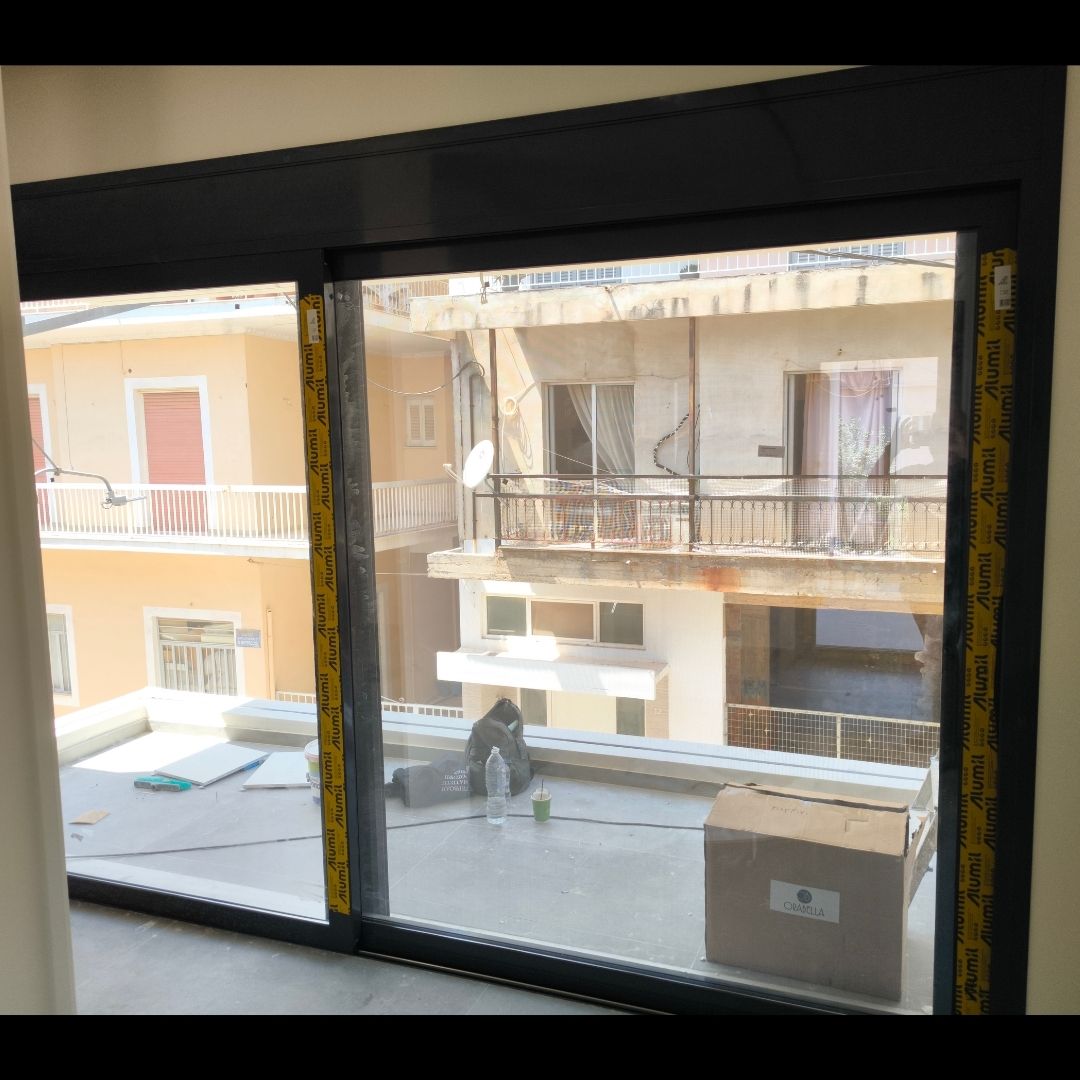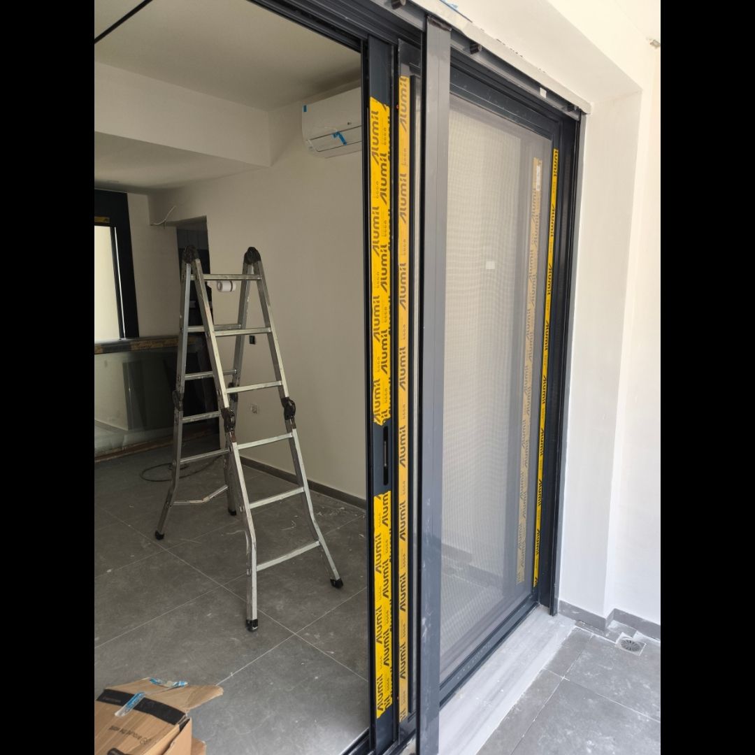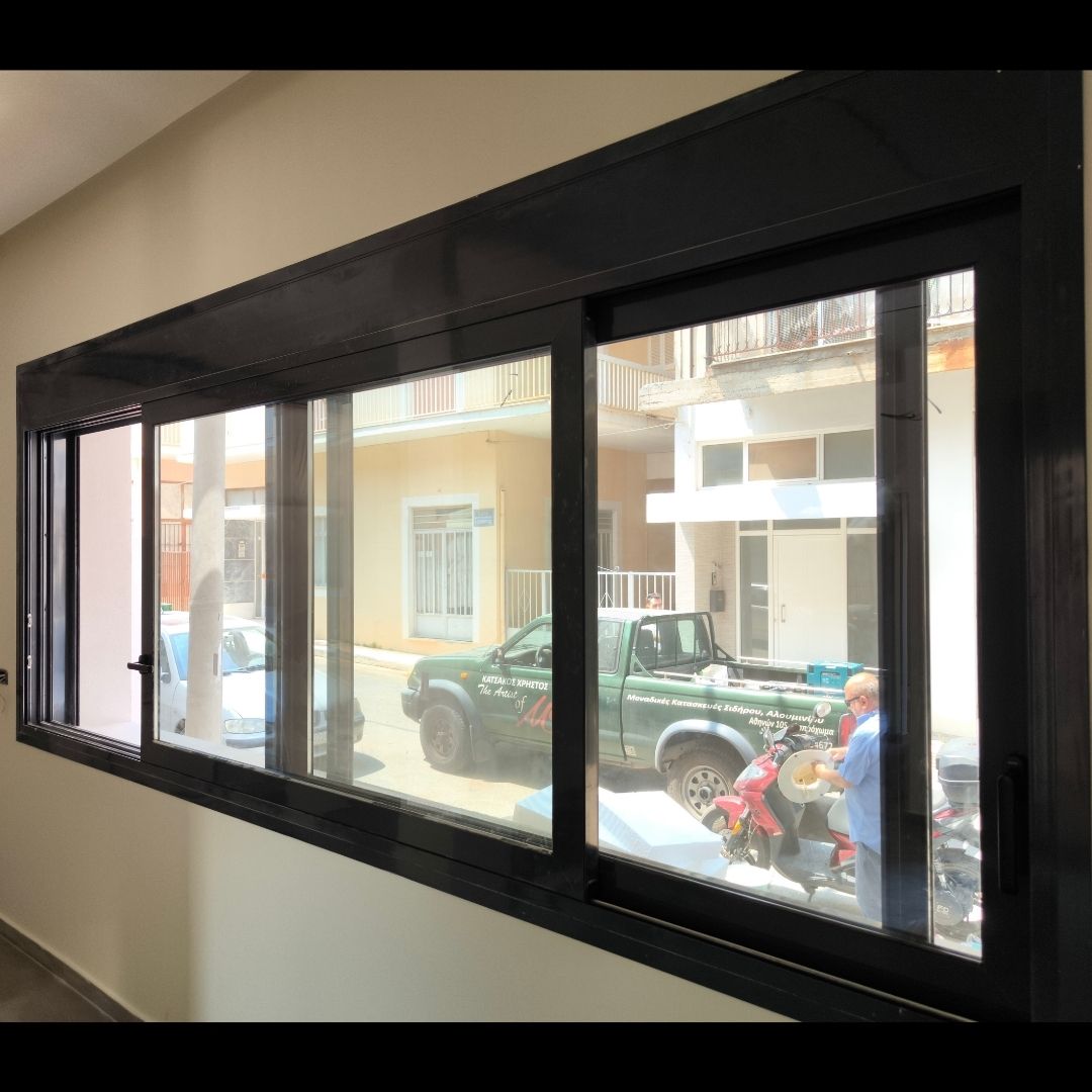 Τοποθέτηση Ενεργειακά Κουφώματα Αλουμινίου (M9660), Παντζούρια Δίφυλλα Μ9400, Ral:7016, Σήτες: (Plisse, Ρολό/Κάθετη), Μεταλλικές Συρόμενες Ασφάλειες "Καλαμάτα - Γιαννιτσάνικα"