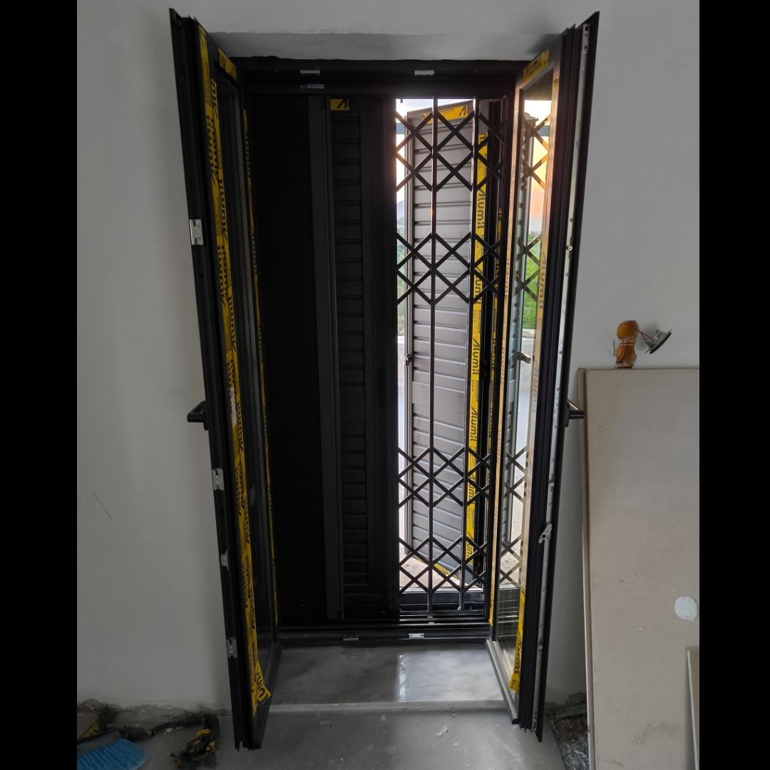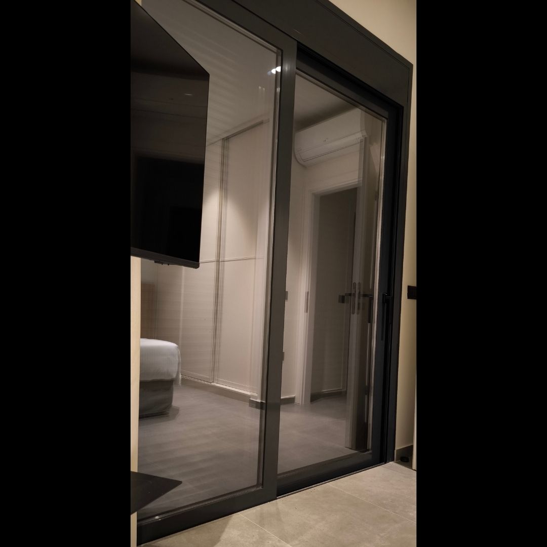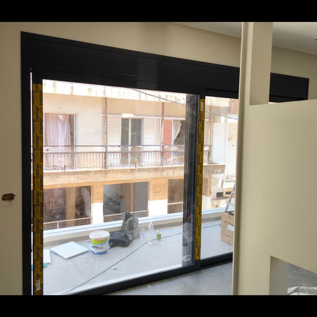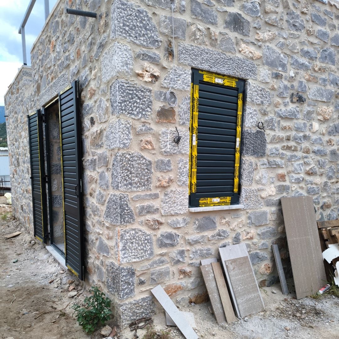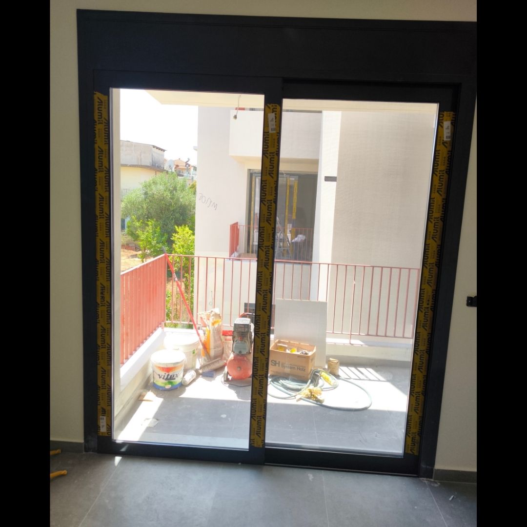 Τοποθέτηση Ενεργειακά Κουφώματα Αλουμινίου (M9660), Παντζούρια Δίφυλλα Μ9400, Ral:7016, Σήτες: (Plisse, Ρολό/Κάθετη), Μεταλλικές Συρόμενες Ασφάλειες "Καλαμάτα - Γιαννιτσάνικα"