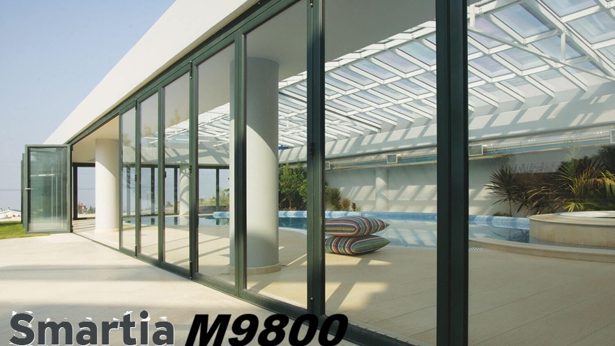 M9800 Μη-θερμομονωτικό σύστημα για πτυσσόμενα κουφώματα αλουμινίου με κρεμαστή κίνηση, κατάλληλο για συμβατικές και πιο βαριές κατασκευές σε ξενοδοχεία, μοντέρνες κατοικίες, κ.ά.