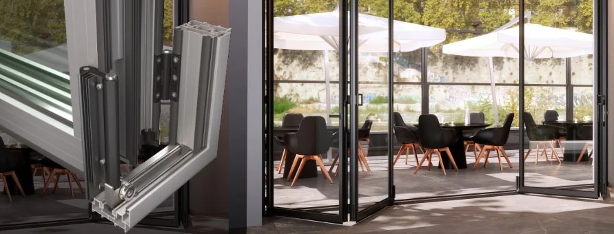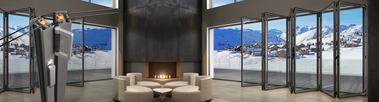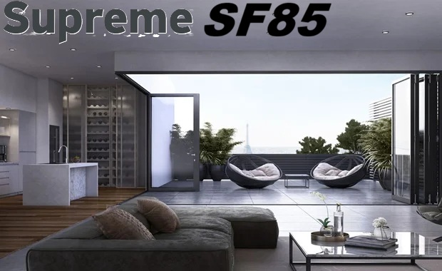 Supreme SF85 Θερμομονωτικό σύστημα για πτυσσόμενα κουφώματα αλουμινίου, με λεπτά προφίλ, ασυναγώνιστες επιδόσεις και δυνατότητα για πολύ μεγάλα ανοίγματα. , υδατοστεγάνωση, ηχομόνωση και ασφάλεια.